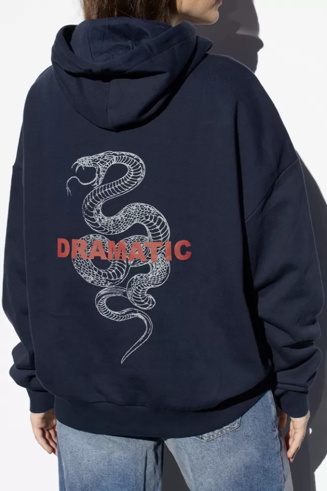 Sweat avec impression Dramatic, avec capuche, poches frontales, manches longues, longueur longue, coupe confortable.