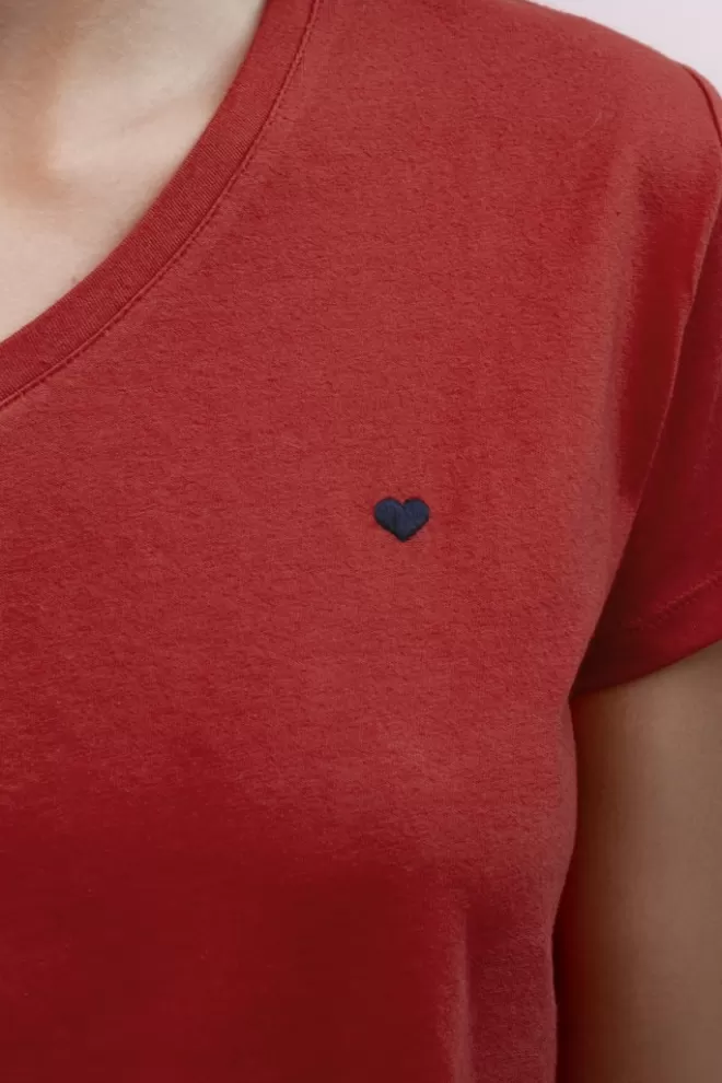 T-shirt avec Cœur brodé, décolleté en V, manches courtes, longueur normale, coupe confortable.