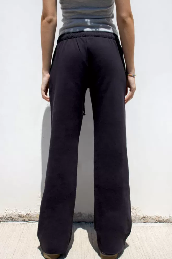 Pantalon jogging évasé, taille élastiquée, ourlet brut, longueur régulière, coupe confortable.